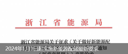 近日,浙江省能源局发布征求《关于做好新能源配储工作 提高新能源并网电能量的通知(征求意见稿)》(以下简称《征求意见稿》)意见的函。其中明确:进一步提高新能源并网电能质量。自2024年1月1日起...